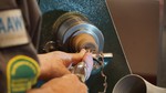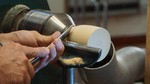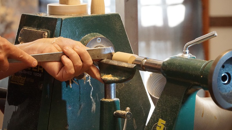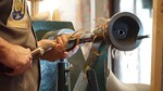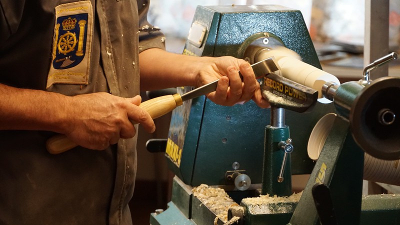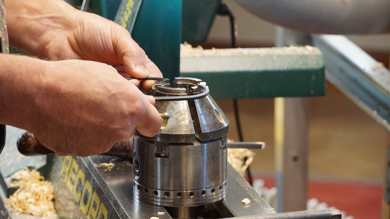 Colwin started with a masterclass on the shew chisel, firstly making a small table leg, then a furled up tree. He the made a small bobbin. His next project involved nutcrackers and smokers. We chose the smokers, and Colwin went through the process of making all the bits, which finally make up the the smoker. Finally he turned a small plain oak bowl, which he then treated with a solution of wire wool and vinegar. This turned the bowl completely black.