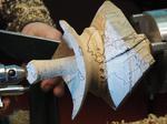 Jeremy Lain. Jeremy made a quirky candle holder from a cube. He turned double ended tri cornerd bowl/dish, using only one tool.