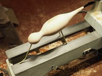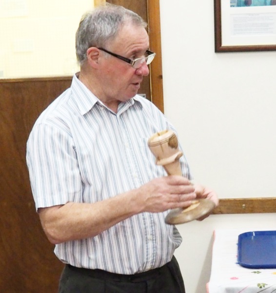 Mike showed us how he makes a covered pot and then he made a  bird which resembled an Avocet.
